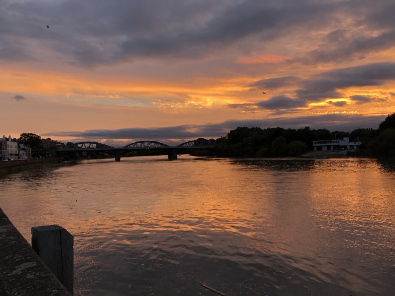 Posted 16 April. Sunset over Barnes, taken from Lower Mall, in front of @akrowing and @furnivall